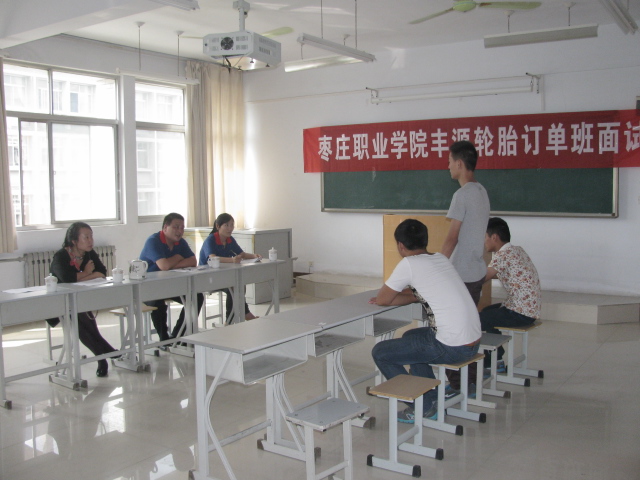 山东丰源轮胎制造股份有限公司位于枣庄市峄城区经济开发区,是由山东枣庄矿业集团、山东丰源煤电股份有限公司共同出资25亿元重组,设计开发与生产半钢子午线轮胎为主的大型现代化国有企业。2013年公司委托枣庄职业学院订单培养一批橡胶工艺专业的技术人才。为了培养符合企业要求的技术人才,校企双方决定举办了这次面试活动。